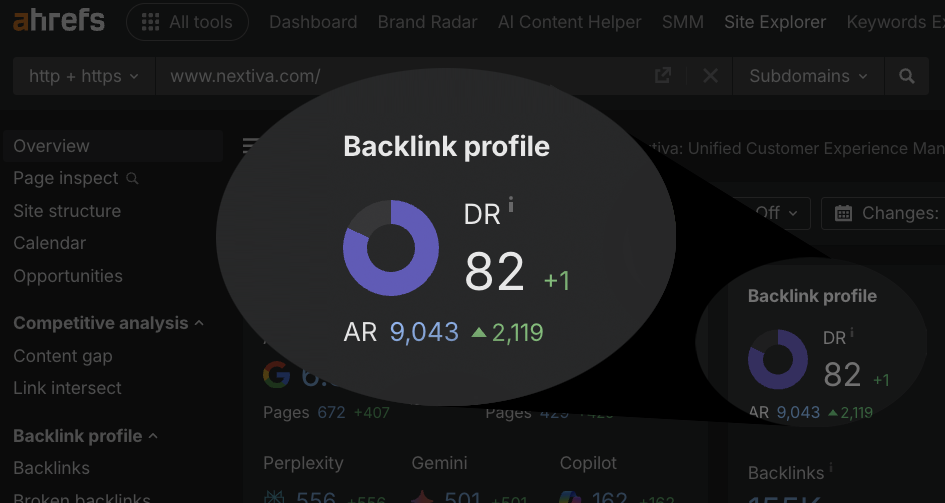 765% increase in organic traffic and 2142% increase in organic keywords